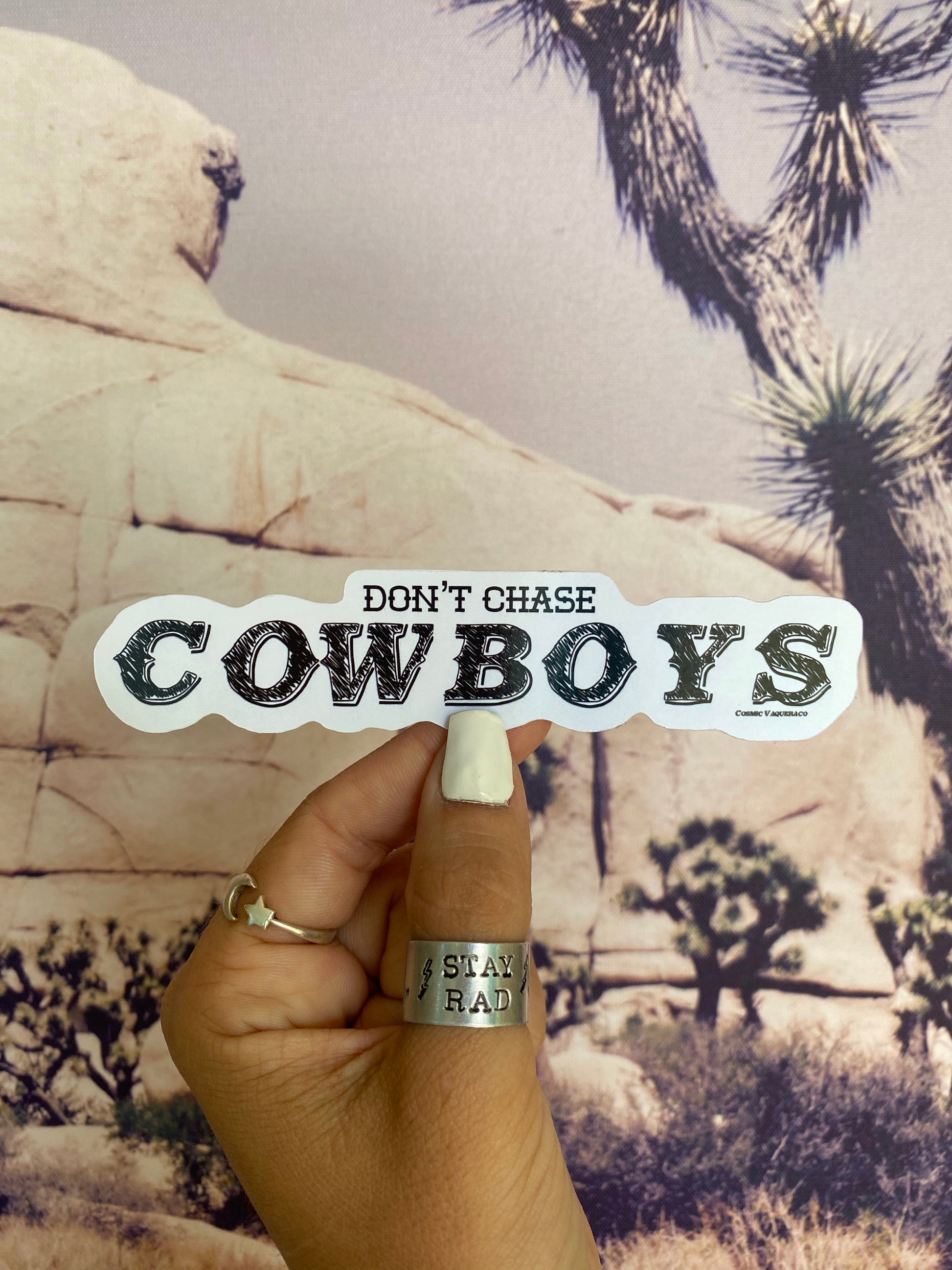 Don’t Chase Cowboys Sticker available in Large and medium. Waterproof vinyl sticker